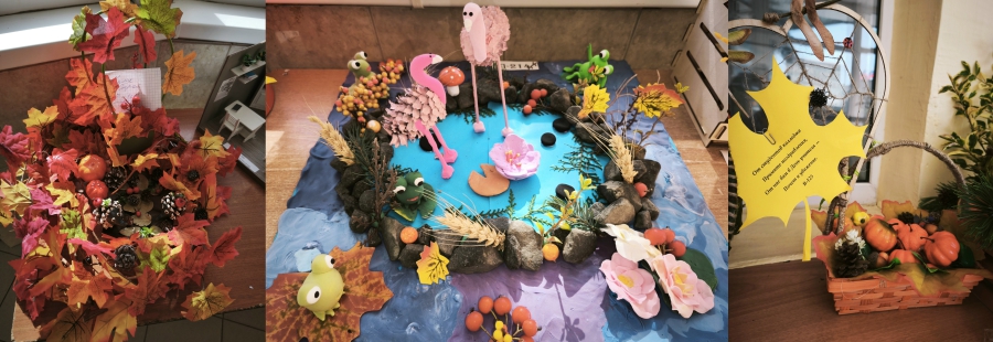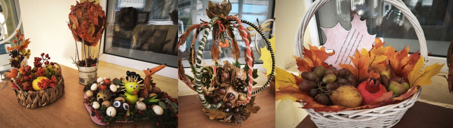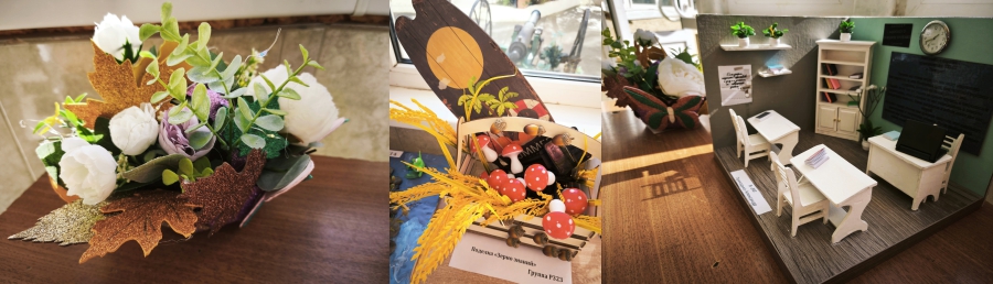 Студенты I и II курсов проявили невероятную фантазию - подготовили осенние композиции из разнообразных природных материалов. Также внимания и восхищения заслужили поздравительные плакаты студентов III курса. Но это еще не всё!