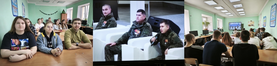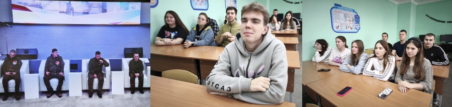 Гостями мероприятия стали участники СВО. Во время беседы они рассказали о важном значении спецоперации в борьбе с неонацизмом, о трудных боевых ситуациях и о мужестве сослуживцев на передовой. Интересным дополнением к повествованию стали стихотворения солдата срочной службы.