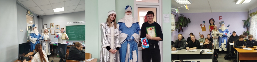 Почетные грамоты за декабрьские достижения и активную гражданскую позицию получили студенты различных групп и специальностей из рук Деда Мороза и Снегурочки.